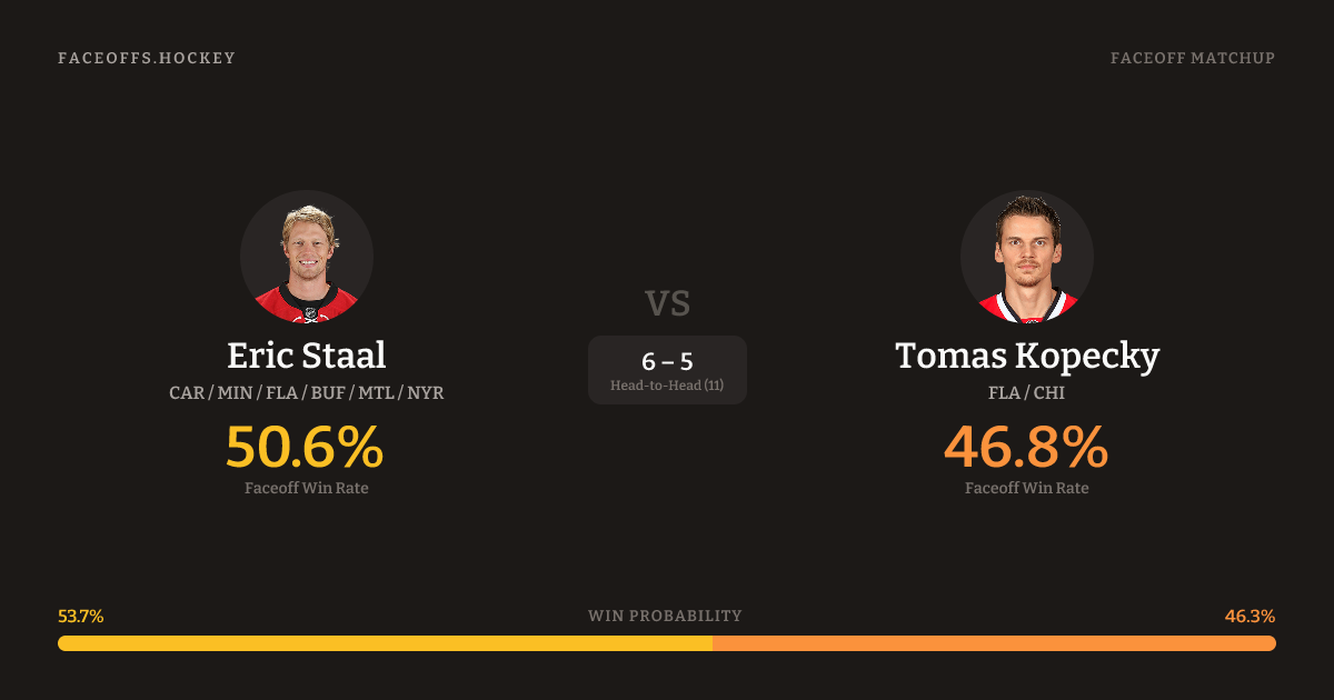 Eric Staal vs Tomas Kopecky — Faceoff Head-to-Head