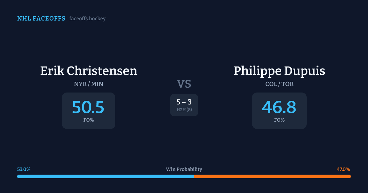 Erik Christensen vs Philippe Dupuis — Faceoff Head-to-Head