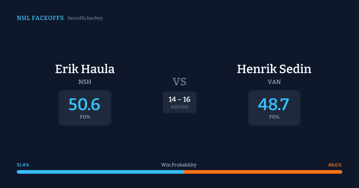 Erik Haula vs Henrik Sedin — Faceoff Head-to-Head