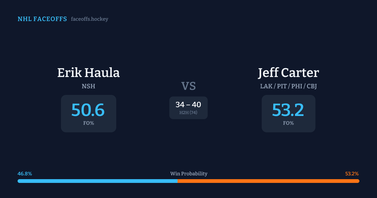 Erik Haula vs Jeff Carter — Faceoff Head-to-Head