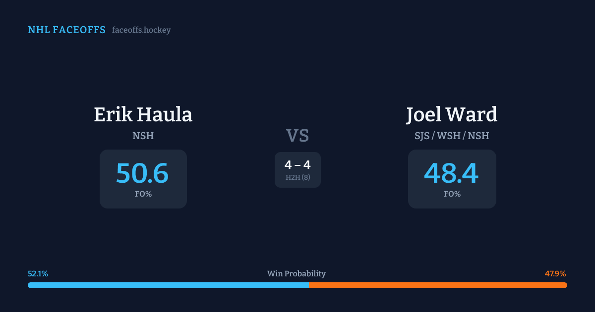 Erik Haula vs Joel Ward — Faceoff Head-to-Head