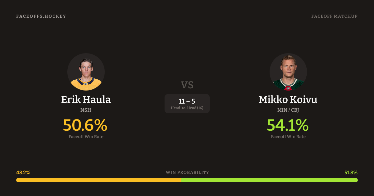 Erik Haula vs Mikko Koivu — Faceoff Head-to-Head