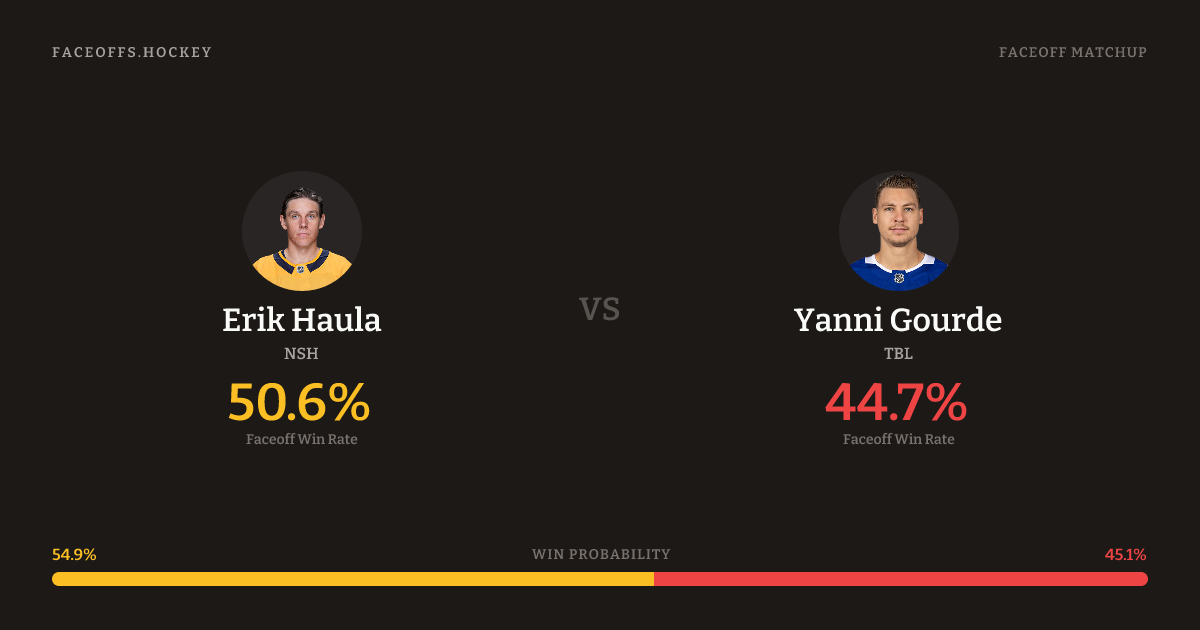 Erik Haula vs Yanni Gourde — Faceoff Head-to-Head