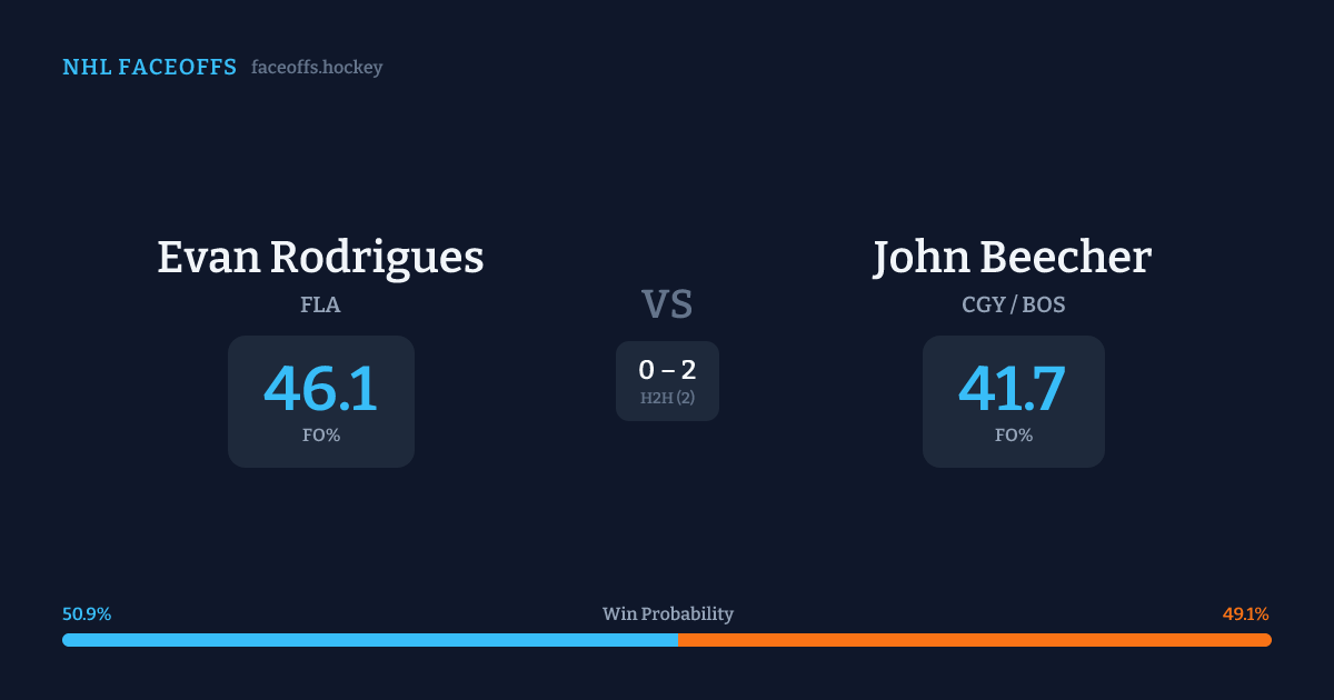 Evan Rodrigues vs John Beecher — Faceoff Head-to-Head