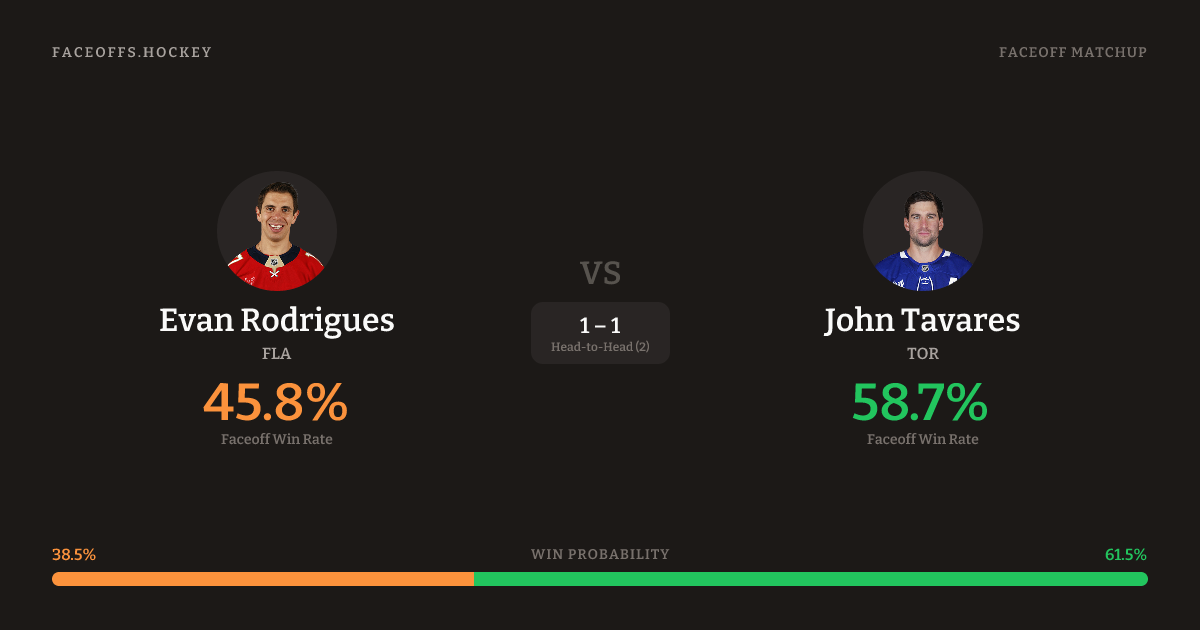 Evan Rodrigues vs John Tavares — Faceoff Head-to-Head