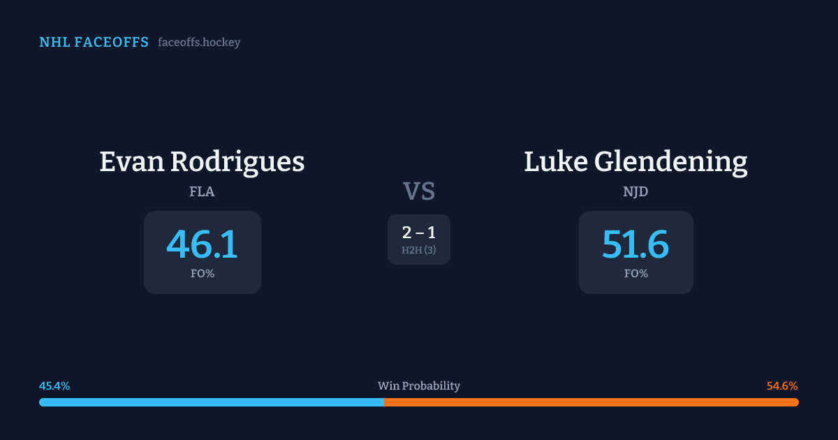 Evan Rodrigues vs Luke Glendening — Faceoff Head-to-Head