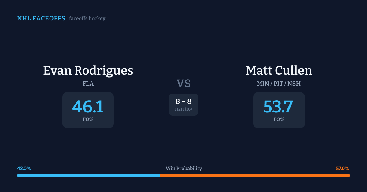 Evan Rodrigues vs Matt Cullen — Faceoff Head-to-Head