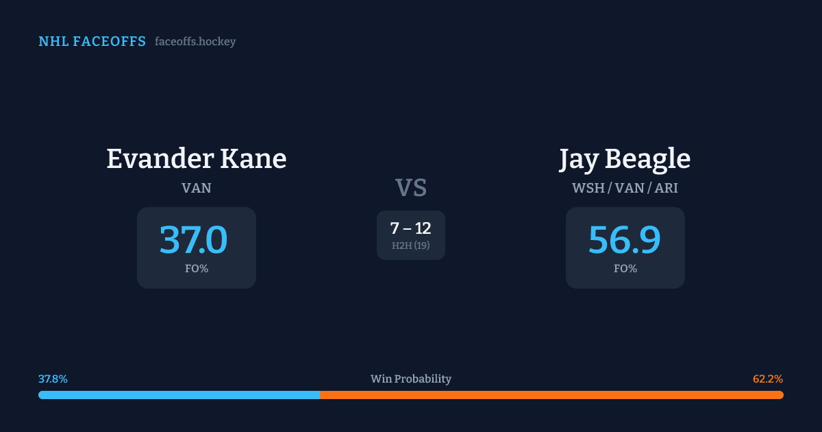 Evander Kane vs Jay Beagle — Faceoff Head-to-Head