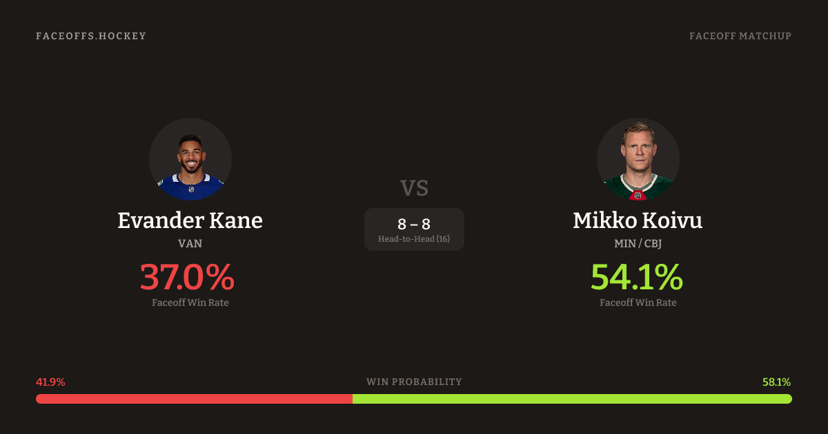 Evander Kane vs Mikko Koivu — Faceoff Head-to-Head