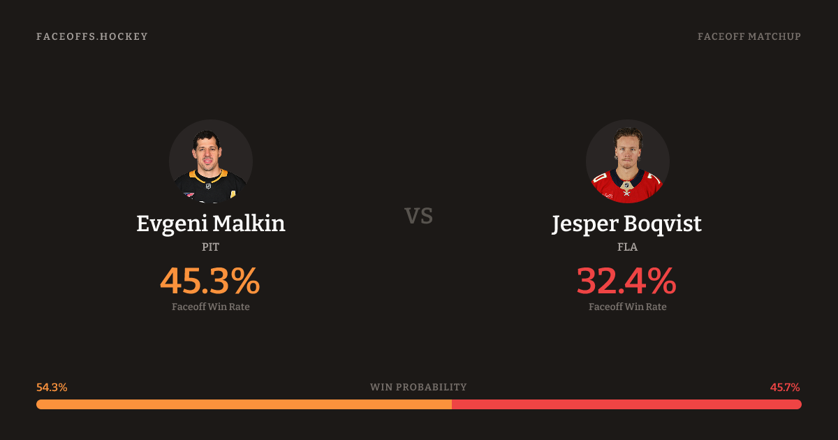 Evgeni Malkin vs Jesper Boqvist — Faceoff Head-to-Head