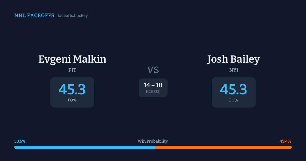 Evgeni Malkin vs Josh Bailey — Faceoff Head-to-Head