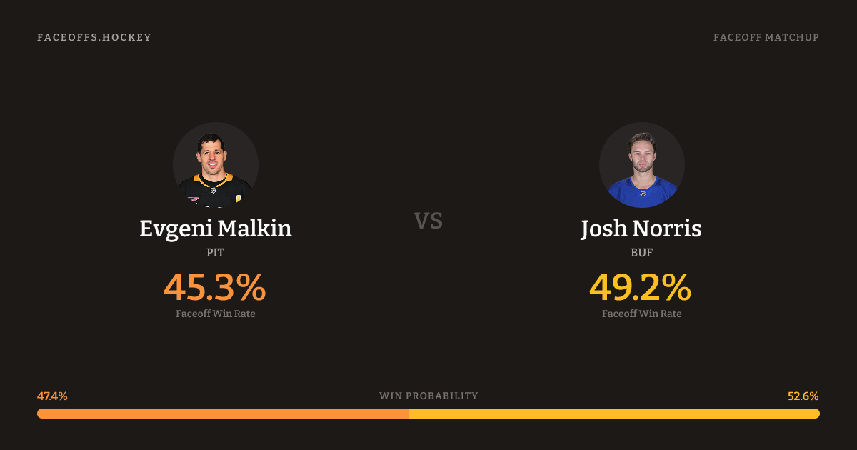 Evgeni Malkin vs Josh Norris — Faceoff Head-to-Head