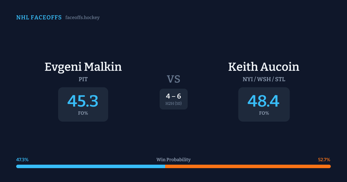 Evgeni Malkin vs Keith Aucoin — Faceoff Head-to-Head