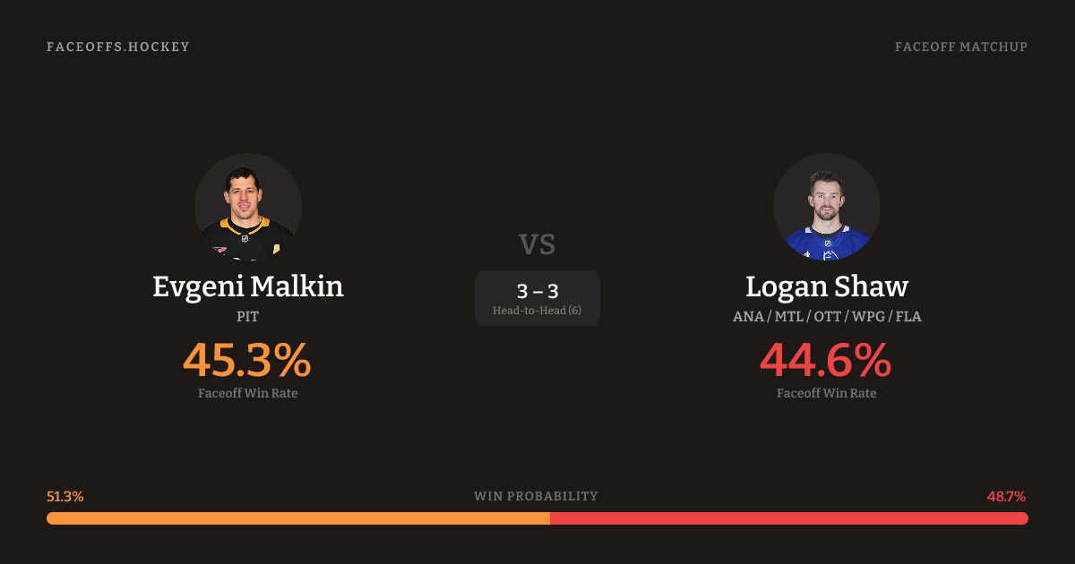 Evgeni Malkin vs Logan Shaw — Faceoff Head-to-Head