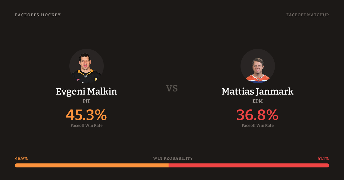 Evgeni Malkin vs Mattias Janmark — Faceoff Head-to-Head