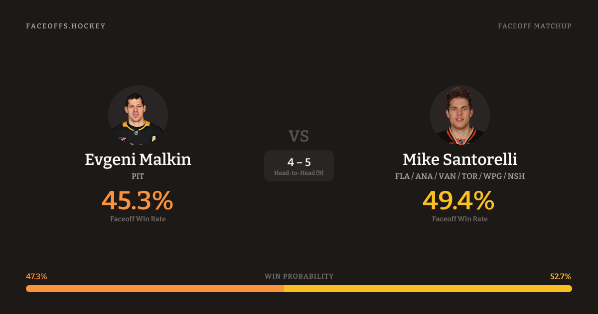 Evgeni Malkin vs Mike Santorelli — Faceoff Head-to-Head