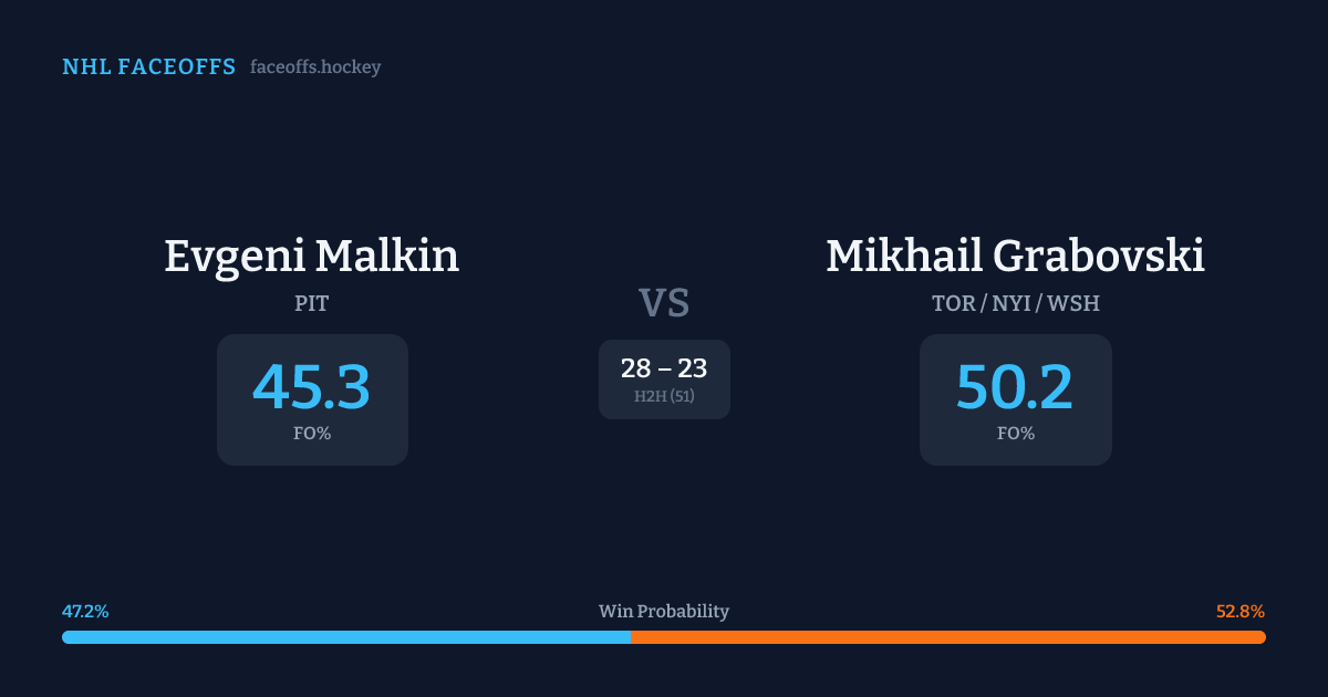 Evgeni Malkin vs Mikhail Grabovski — Faceoff Head-to-Head