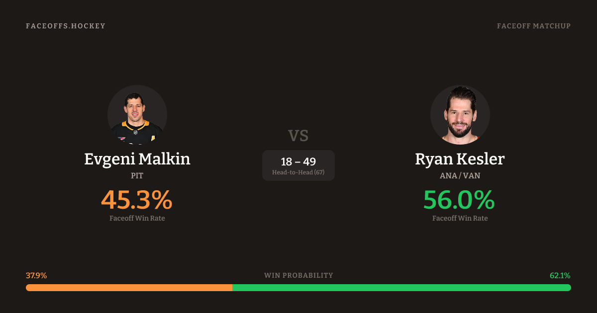 Evgeni Malkin vs Ryan Kesler — Faceoff Head-to-Head