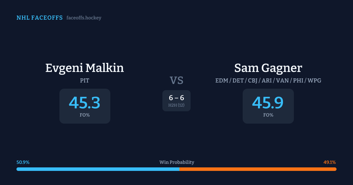 Evgeni Malkin vs Sam Gagner — Faceoff Head-to-Head