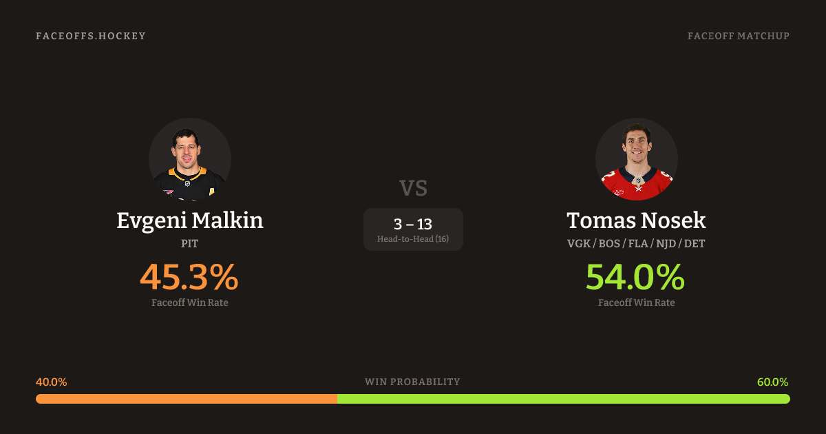 Evgeni Malkin vs Tomas Nosek — Faceoff Head-to-Head