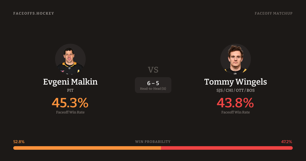 Evgeni Malkin vs Tommy Wingels — Faceoff Head-to-Head