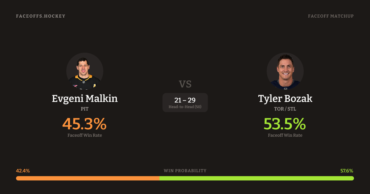 Evgeni Malkin vs Tyler Bozak — Faceoff Head-to-Head