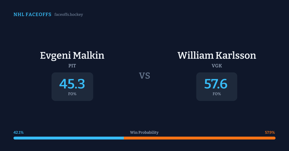 Evgeni Malkin vs William Karlsson — Faceoff Head-to-Head