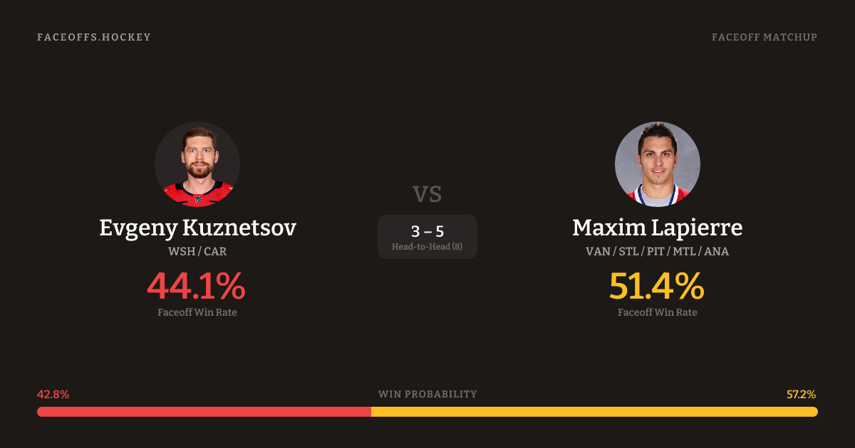 Evgeny Kuznetsov vs Maxim Lapierre — Faceoff Head-to-Head
