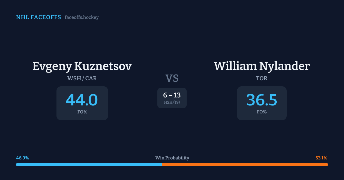 Evgeny Kuznetsov vs William Nylander — Faceoff Head-to-Head