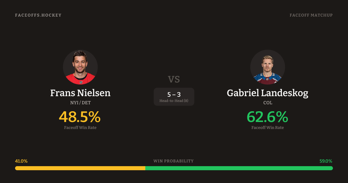 Frans Nielsen vs Gabriel Landeskog — Faceoff Head-to-Head