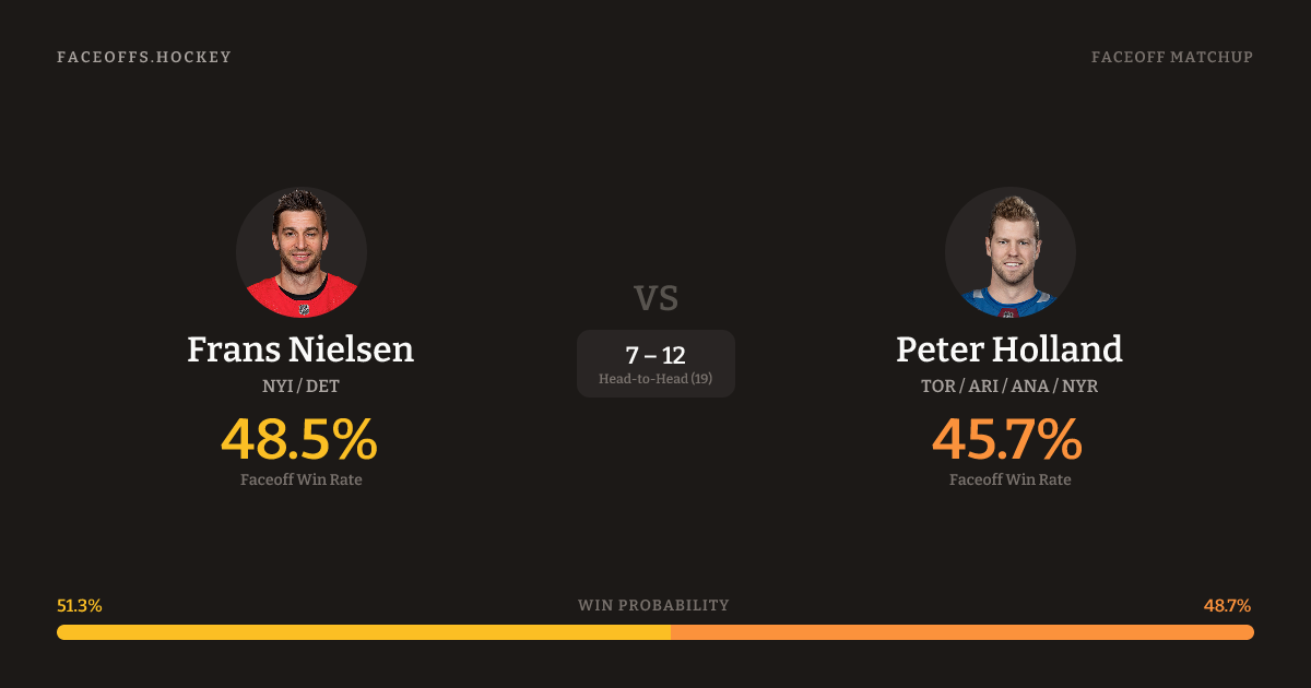 Frans Nielsen vs Peter Holland — Faceoff Head-to-Head