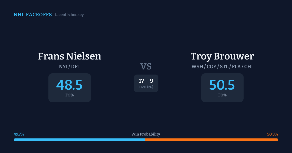 Frans Nielsen vs Troy Brouwer — Faceoff Head-to-Head