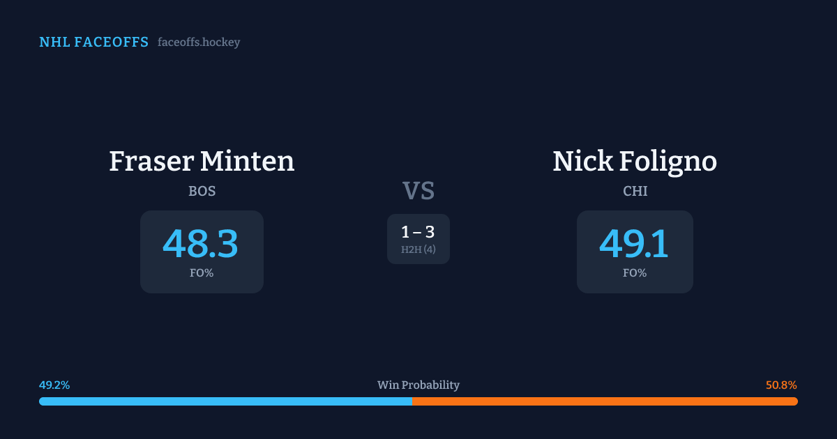 Fraser Minten vs Nick Foligno — Faceoff Head-to-Head