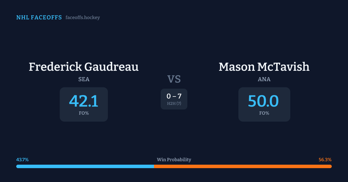 Frederick Gaudreau vs Mason McTavish — Faceoff Head-to-Head