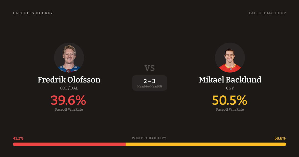 Fredrik Olofsson vs Mikael Backlund — Faceoff Head-to-Head