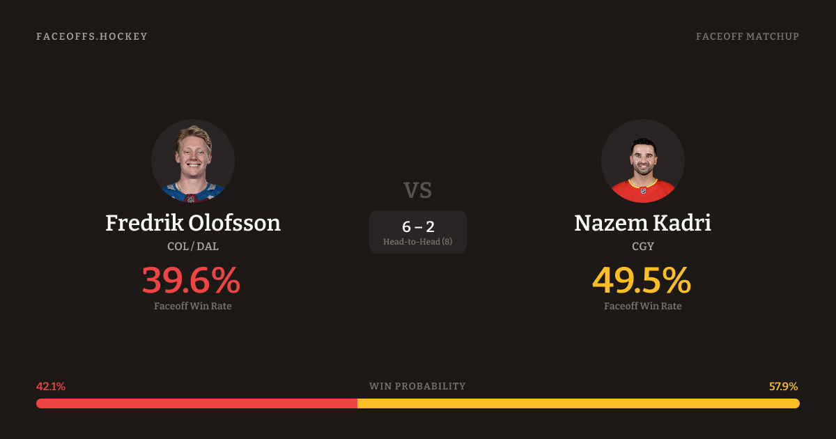 Fredrik Olofsson vs Nazem Kadri — Faceoff Head-to-Head