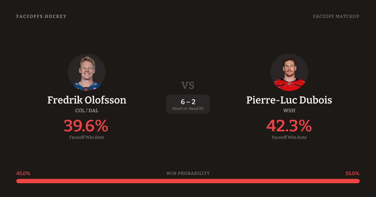 Fredrik Olofsson vs Pierre-Luc Dubois — Faceoff Head-to-Head