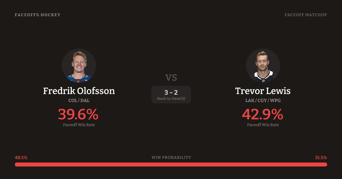 Fredrik Olofsson vs Trevor Lewis — Faceoff Head-to-Head