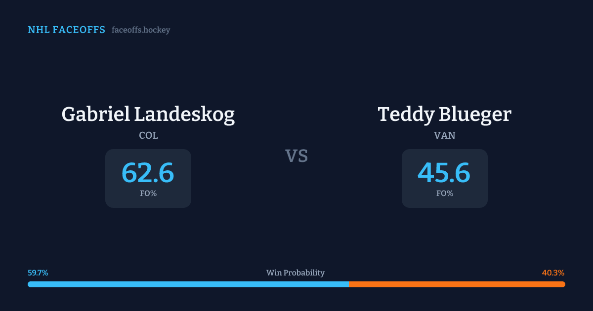 Gabriel Landeskog vs Teddy Blueger — Faceoff Head-to-Head