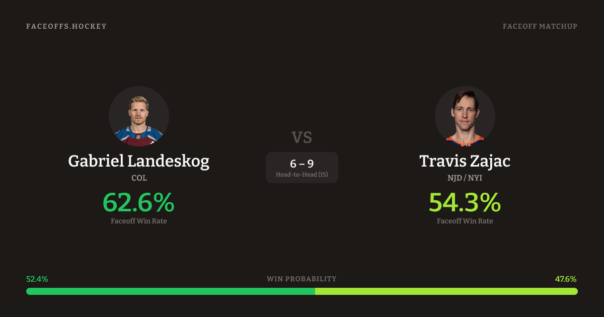 Gabriel Landeskog vs Travis Zajac — Faceoff Head-to-Head