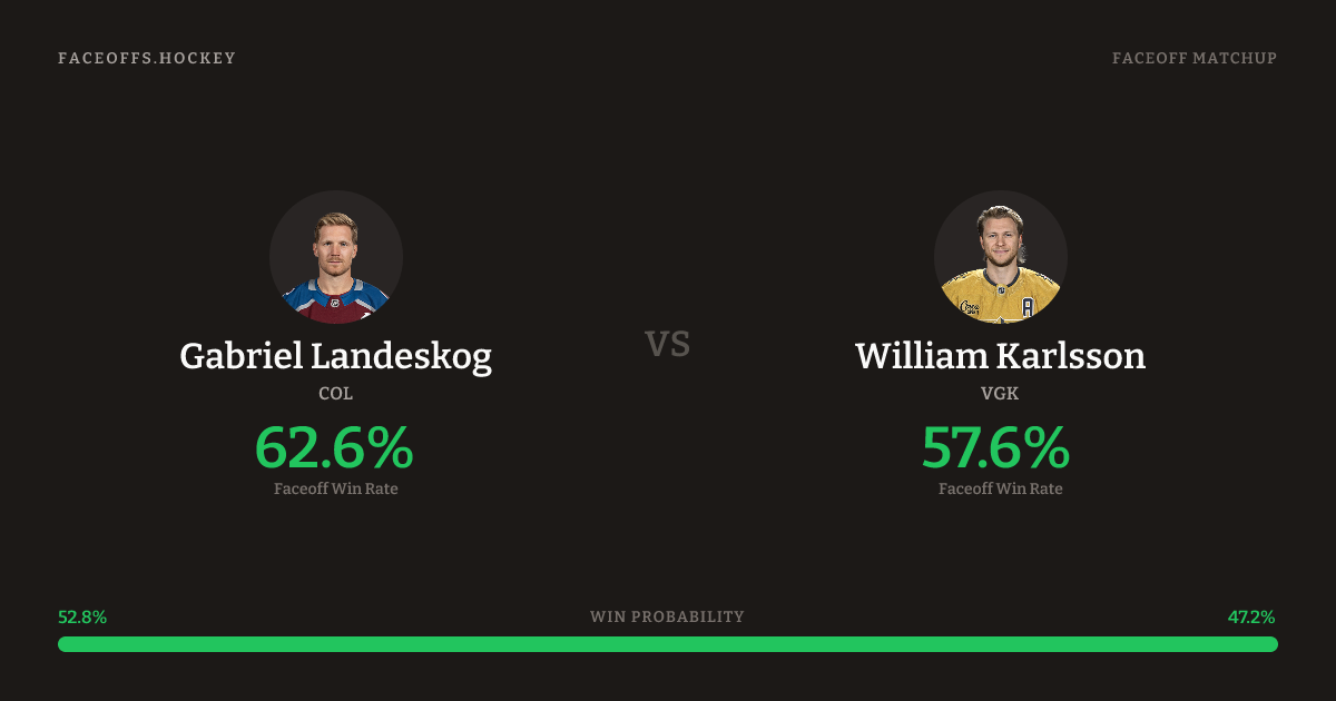 Gabriel Landeskog vs William Karlsson — Faceoff Head-to-Head