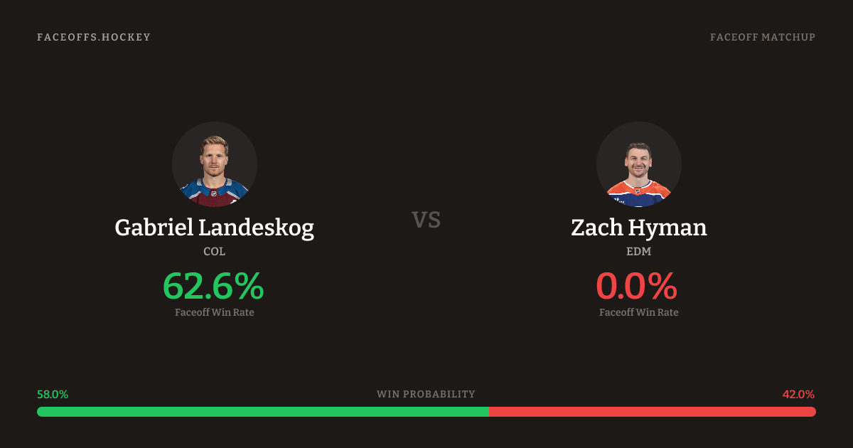 Gabriel Landeskog vs Zach Hyman — Faceoff Head-to-Head