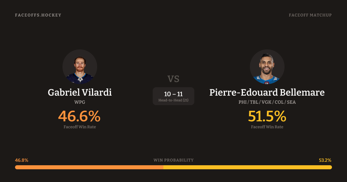Gabriel Vilardi vs Pierre-Edouard Bellemare — Faceoff Head-to-Head