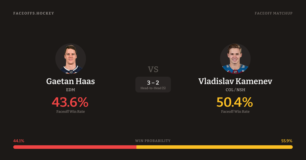Gaetan Haas vs Vladislav Kamenev — Faceoff Head-to-Head