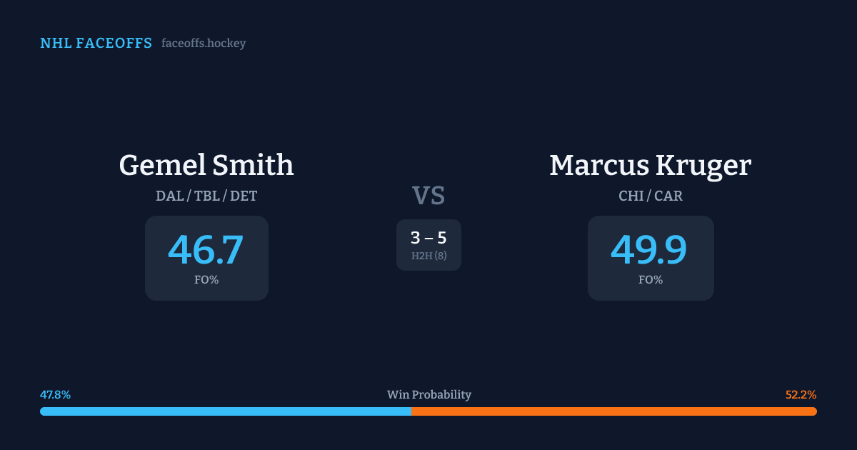 Gemel Smith vs Marcus Kruger — Faceoff Head-to-Head