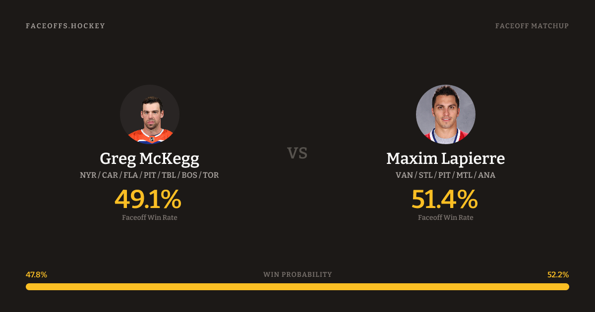 Greg McKegg vs Maxim Lapierre — Faceoff Head-to-Head