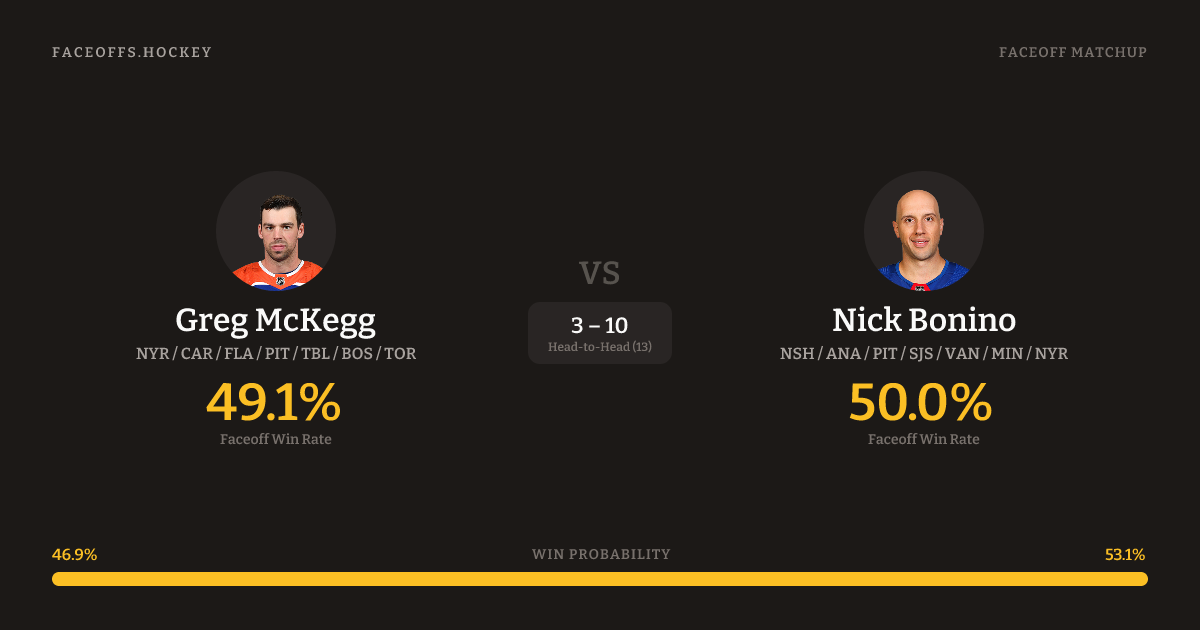 Greg McKegg vs Nick Bonino — Faceoff Head-to-Head