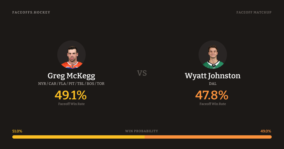 Johnston shoots right. McKegg is 52.9% vs right-shot opponents (471).