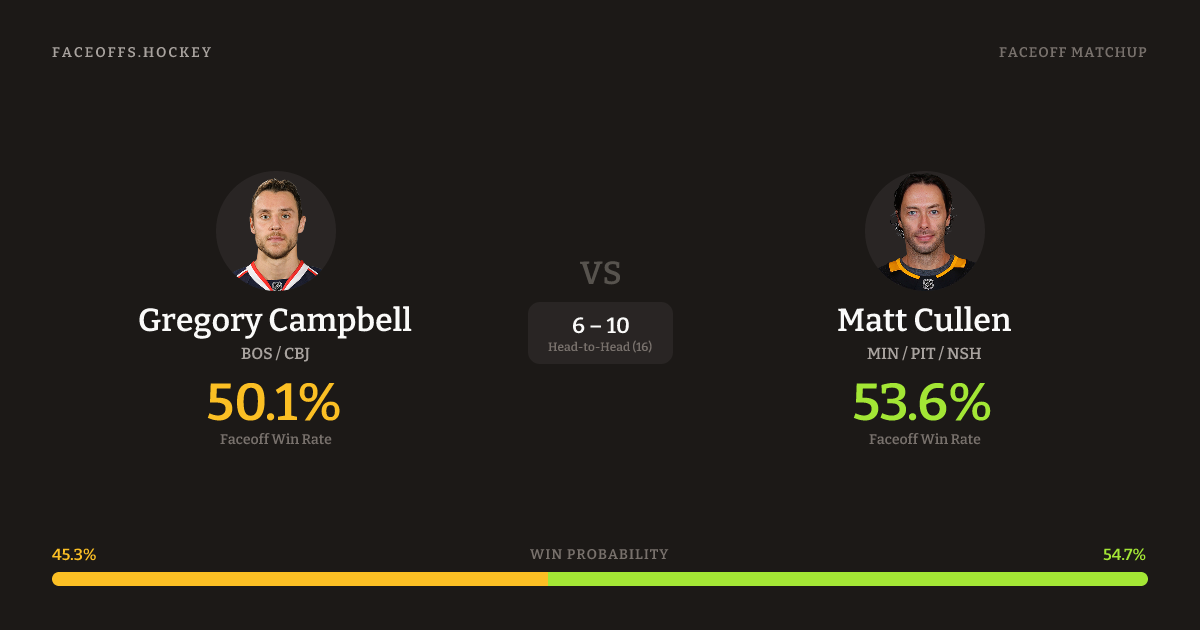 Gregory Campbell vs Matt Cullen — Faceoff Head-to-Head