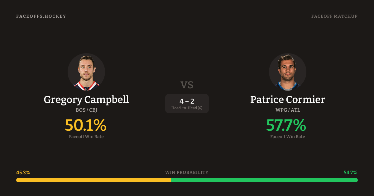 Gregory Campbell vs Patrice Cormier — Faceoff Head-to-Head